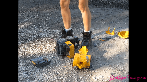 Alesia is playing with another brand new Bruder concrete mixer truck before she begins to crush it by stomping it hard with her black Buffalo Classic boots. She tells you how much fun she has to destroy the car and demands you to send her a bigger and more stable car the next time to challenge her more.
