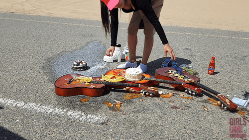 Part 7: In this grand final of the video, Anastasija is eager to perform some guitar testing with lots of food, as she wants to examine the quality of the guitars and see how fast they get ruined.