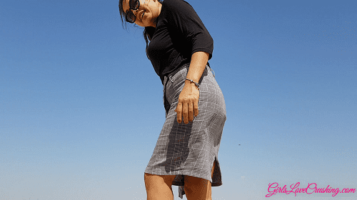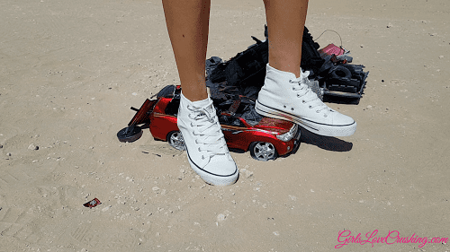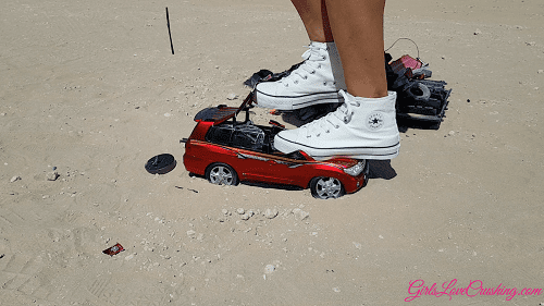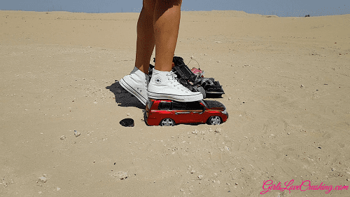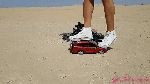 Clip no. 8 of Anastasija's new oudoor crush series. The next large SUV toy car gets crushed under her Converse sneakers as she jumps on it several times before completely obliterating it. Giantess play and talk...don't miss it!