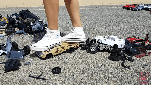 Part 4: I love the sounds of breaking toy cars so much; therefore I decide to take care of the next 4 cars (2 police cars, 1 SUV and 1 pickup truck) wearing my Converse sneakers.