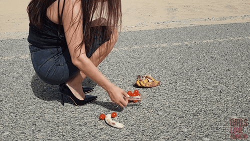 Today Anastasija has fun playing with some bananas and tomatoes, pretending they are your dicks and balls. One fruit penis after another eventually gets punctured and crushed under her merciless high heels, creating quite a mess while she makes fun of your tiny balls. Are you ready to feel the pain?