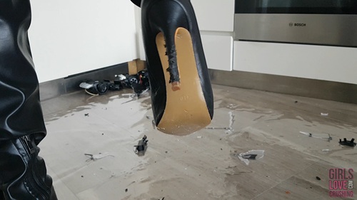 When she realises the scratches on her heel, Anastasija gets really pissed and determines to completely obliterate the car. While doing so she is very chatty about how much pleasure it gives her, accepting the fact that as a result also her beautiful boots will get damaged even more.