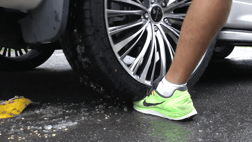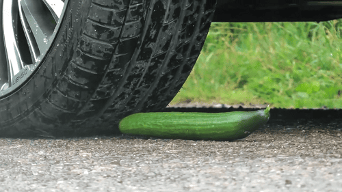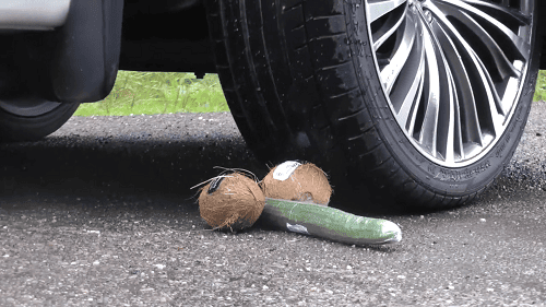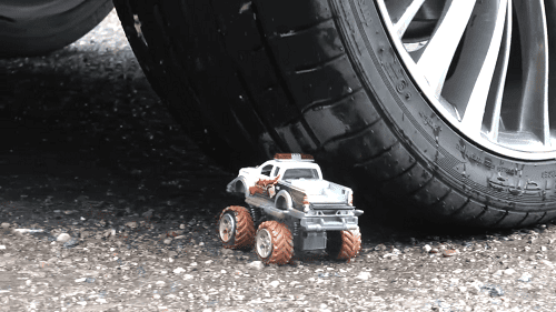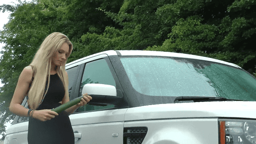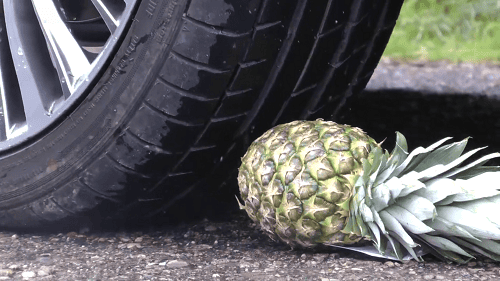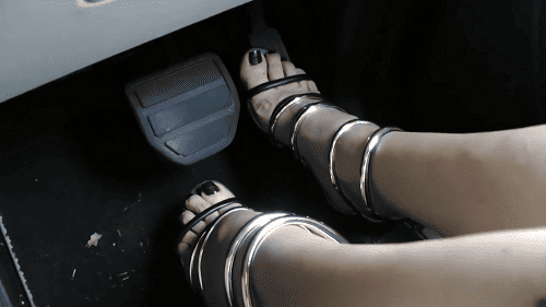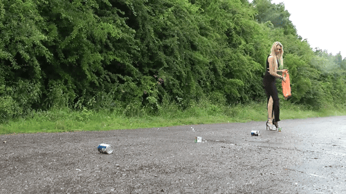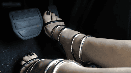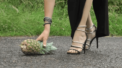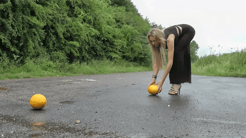 Angel has fun driving to the shooting destination, talking about crushing things and how she would like to crush a man beneath her heavy car. At the destination she enjoys crushing fruit, full cans and toys. As a good will gesture she allows the slave who bought the objects to feel the weight of her car as she drives over his foot ... she laughs wickedly doing this!