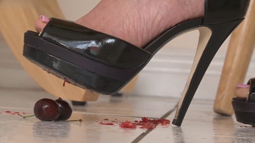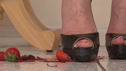 In my crazy world of dominance, I have the power to shrink all you little men into small objects like all these fruits. One of my most favourite things is to be powerful and crush items, so you can already foresee what will happen to you. With my lovely high heels I also love to perform hard trampling and create a big mess on the kitchen floor.