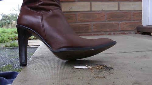 Just take one last look at those big wheels that are going to run over you. Eventually I crush the cigarette with my gorgeous leather boots and start driving!