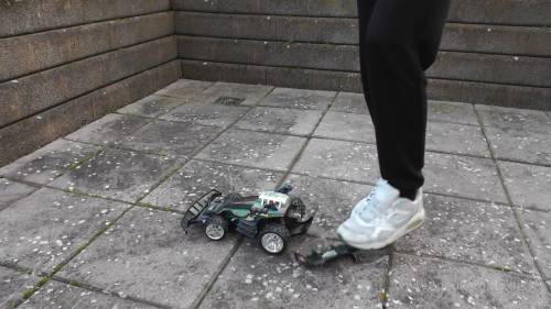 The remote control and car eventually get completely crushed under her shoes until only scrap remains in the end.