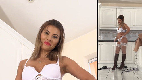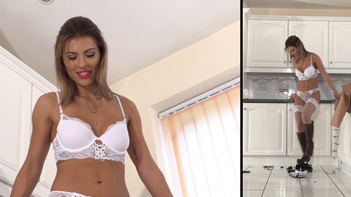 For additional pleasure, she later decides to take the action inside to the next level. She removes her coat and applies her full weight on the car before starting to destroy the car underneath her boots, just wearing her sexy white lingerie. Don’t miss this hot action!
