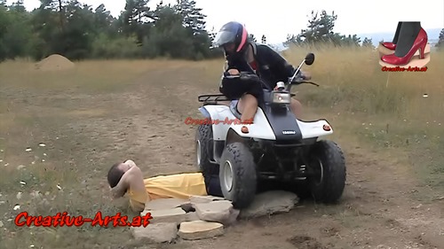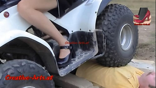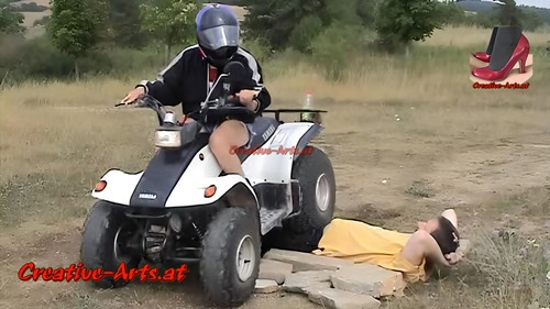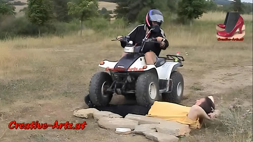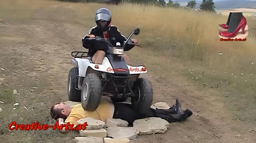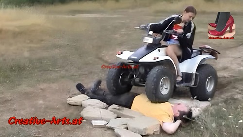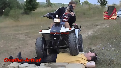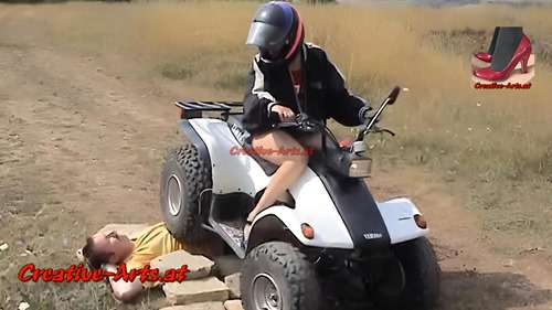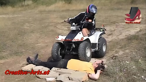 A women runs over a man with her quad bike.