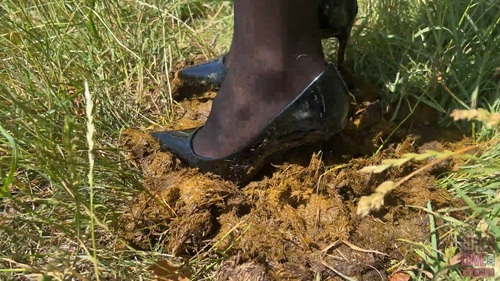 Custom Clip: On a beautiful summer day, Jenn takes a walk through the fields in her business outfit. As she enjoys the picturesque scenery, she doesn’t really pay attention to where she is stepping. It doesn’t take long until she accidentally treads in a pile of really wet horse poo with her new black patent leather pumps.