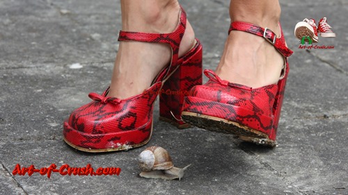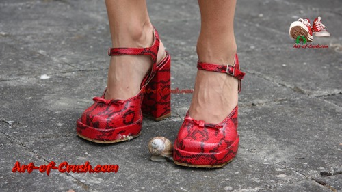 Sie tritt auf Schnecken und zermatscht sie unter ihren Schuhen.