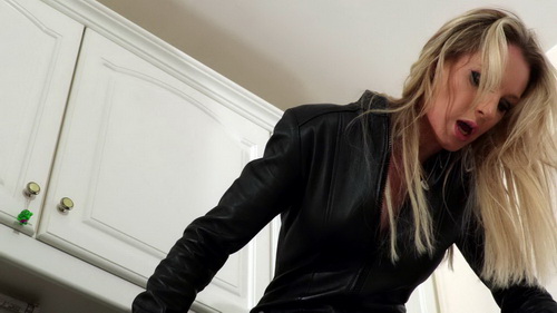 In this scene the slave is laying down on the cold floor and made to worship the boots of Lady Dark Angel, forced to lick the soles and heels. She crushes food on the floor and makes him eat the crushed remains from her boots.