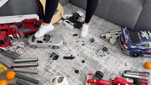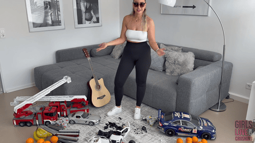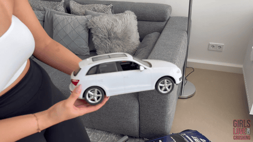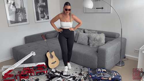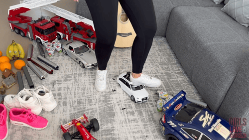 Later, Mia decides to carefully step on the cars with her socks to feel the shape of the vehicles under her feet before Peach demands her to put on her Nike sneakers and crush the Audi first. Mia starts breaking off the side mirrors and once the car is eventually obliterated, she moves over to the Mercedes. She carefully walks over the car to test if it can carry her weight prior to crushing it to bits and pieces and has so much fun, that she can’t await to destroy the next item.