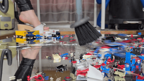Once again, Mila’s son left plenty of his toys on the kitchen table, although he had been told several times before not to do so. Hence Mila comes up with the brilliant idea to just crush everything to pieces in order to teach her son a memorable lesson. All his brand new RC cars, little model houses and cars, his beloved Bruder fire truck as well as his guitar will go to waste before vacuuming everything up.