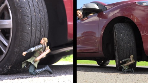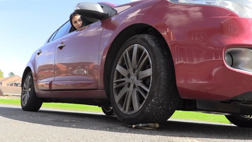 Roxanne shrunk a man into a tiny miniman, wondering how he feels about it. She now has the ultimate power to do with him whatever she wants. Instead of crushing him with her boots, Roxanne has something much bigger and better planned…crushing him with the wheels of her car! She can see the fear in his eyes and hear his tiny little screams before she gets into her car and starts the engine.