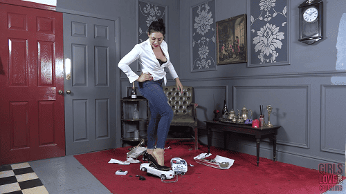 When obliterating the large model car my heel gets stuck so badly, that I even have to take my shoe off to release it. Just look how severe the heel is damaged now! Looks like you are gonna be getting your wallet out and take me shoe shopping right away!