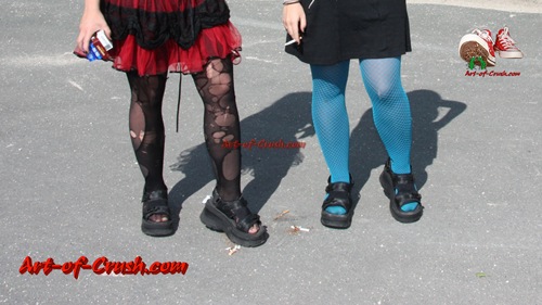 Two girls wear platform sandals.