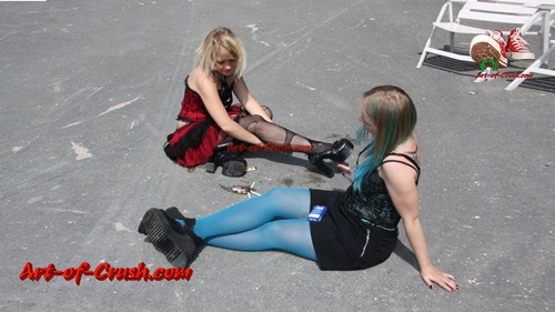 Girls in classic Buffalo boots crushing snails and worms (CleanUp1-partA) (6050)